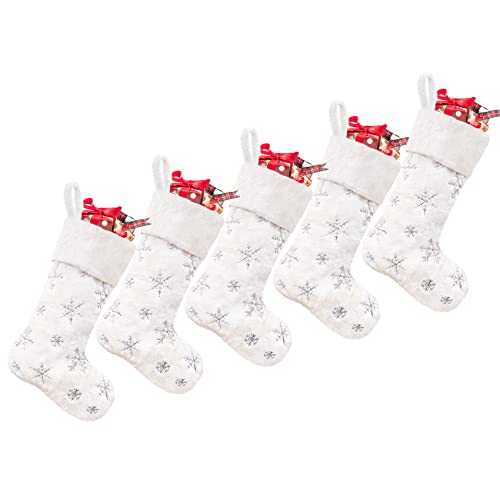 5 Pack Bulk: White Fur Christmas Stockings set of 5 that perfectly fit the winter Christmas. absolute best for hanging to Christmas tree, wall, door, and fireplace, Christmas decoration, home, restaurant, club, bar and so forth.