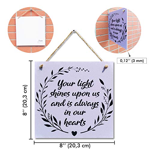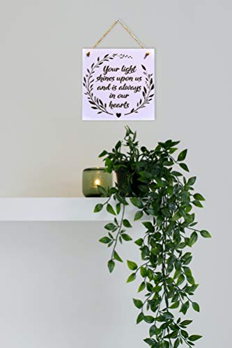 • CARISPIBET Your light shines upon us and is always in our hearts Decoration sign gift for loss of loved ones bereavement decor signs 8 x 8
