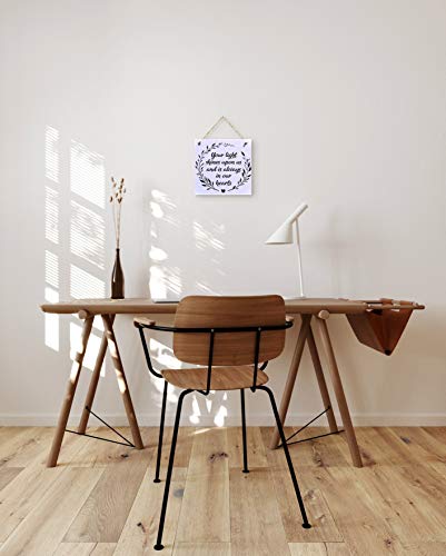 CARISPIBET Your light shines upon us and is always in our hearts Decoration sign gift for loss of loved ones bereavement décor signs 8″ x 8″