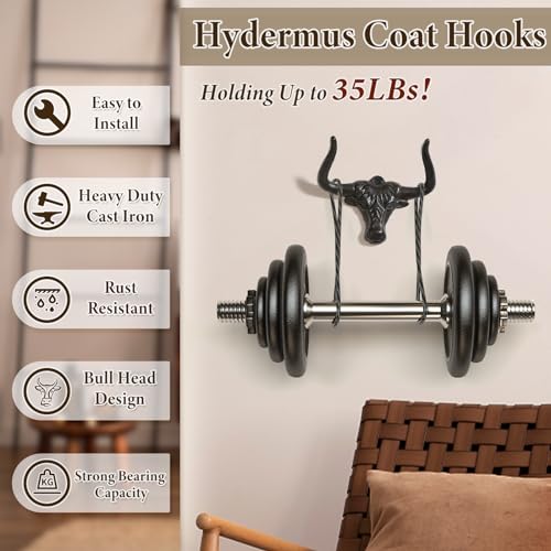 Unique Bullhead Anaimal Hooks——Measured with 5.5 x 4.3 x 2.7 in and covered with powder coated, features the rust color and smooth appearance which will not do any harm your items. The bull horn with certain angle designed to hold or display your items, which ensuring items securely in place without falling off.