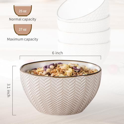 🥣 PERFECT SIZE: This ceramic cereal bowl has a diameter of 6 inches and a capacity of 26 oz, it can hold cereals and soup without spilling, it will also be used for oatmeal, salad, dessert, rice, and any of your favorite foods.
