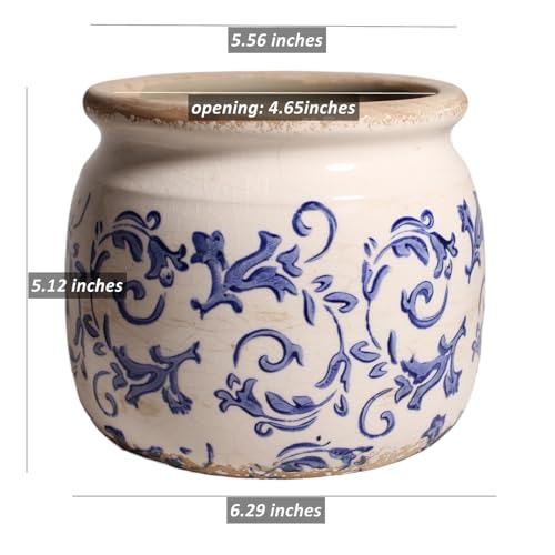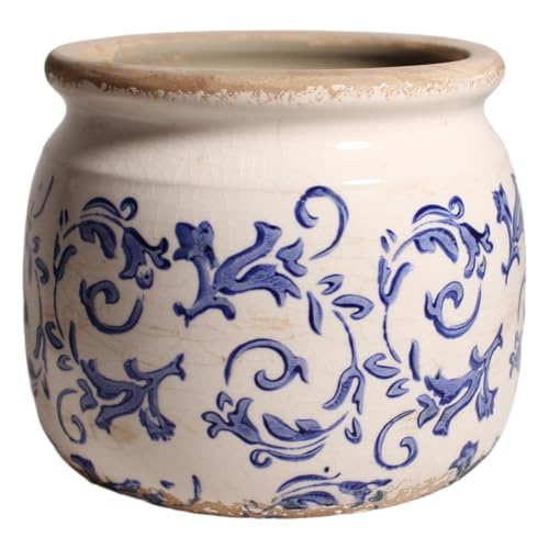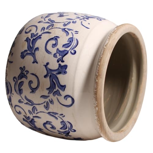 TIMELESS ELEGANCE: This vintage ceramic pot for indoor plants showcases a charming chinoiserie design, absolute best for enhancing any home décor with its classic blue pattern on a white background.