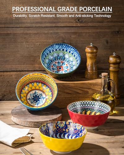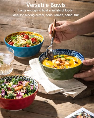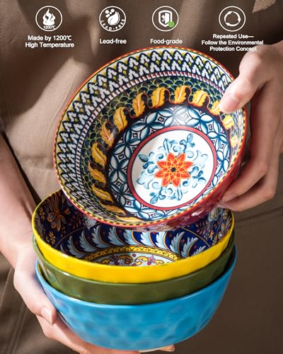 Unique Boho Style – Experience the charm of our handmade bowl set, adorned with special geometric patterns and vibrant colors, adding a touch of personality to your table. The bohemian design on these ceramic bowls not only adds style and color to your food, table, and kitchen but also brings appetite and excitement to your family and guests.