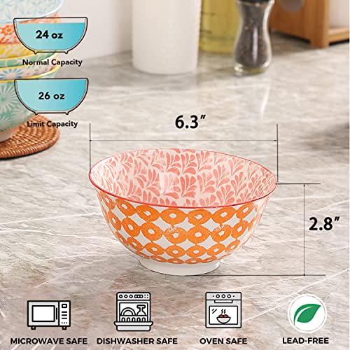 More than one-purpose Bowls: FERAHI Cereal Bowl have a MAX capacity of 26 fl oz. Every ceramic bowl can hold 23~24 fl oz. Ideal for soup, salad, pasta, cereal, oatmeal. Diameter: 6.3 Inch, Height: 3 Inch. Every Bowl Weight: 0.88 lb.