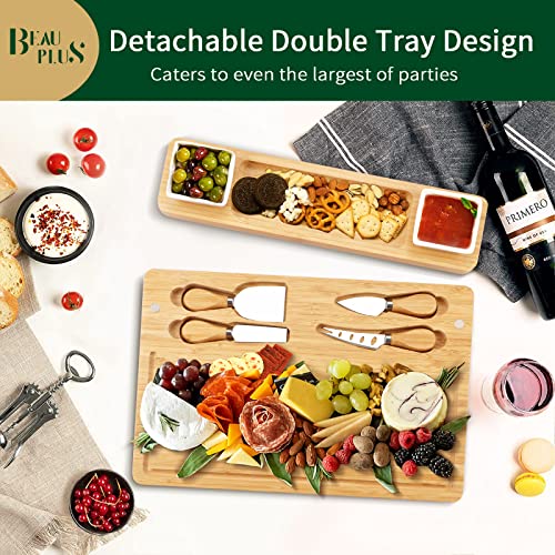 【Perfect Gift for Occasion】Bamboo cheese boards with kitchen utensils can be utilized for any occasion – Gathering, Circle of relatives Reunion, Holidays, Birthdays, BBQ, Weddings, Anniversary, Congratulations, Parties, Congrutalions, Thanksgiving, Christmas, Mothers day, Fathers day, Valentine’s day and the like. Makes a perfect housewarming gift idea!