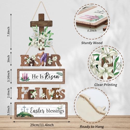 Proper Size & Convenient Usage——The size of the Easter Good Friday decoration home sign is made up of 5 wood signs. The connection is made with staples to fix the rope, and you’ll hang it up in only a few minutes.