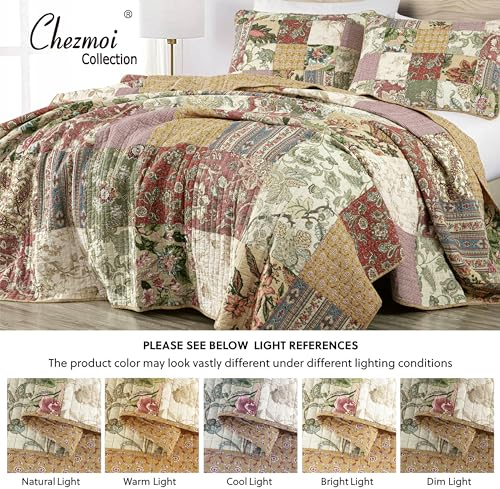 Delaney 3-Piece Floral Patchwork Vintage Quilt Set Includes: 1 Quilt, 2 Shams