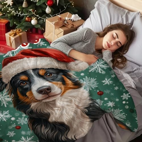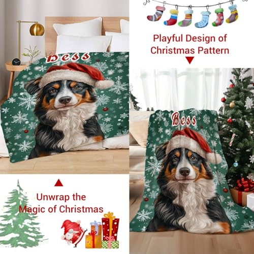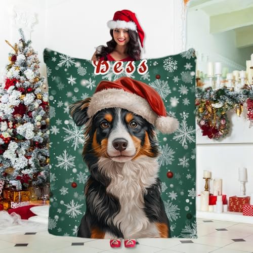 Christmas Australian Shepherd Blanket with Name, Custom Boston Dog Name Throw Blanket,Christmas Personalized Pet Name Soft Cozy Blanket, Customized Dog Gifts for Dog Lovers, 120x90In(XL