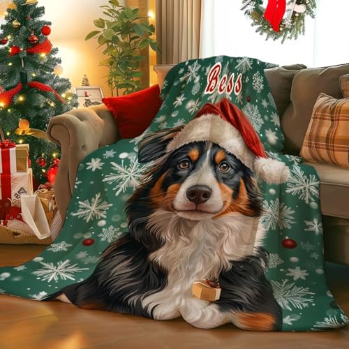 • Christmas Australian Shepherd Blanket with Name Custom Boston Dog Name Throw BlanketChristmas Personalized Pet Name Soft Cozy Blanket Customized Dog Gifts for Dog Lovers 120x90InXL
