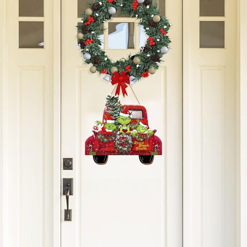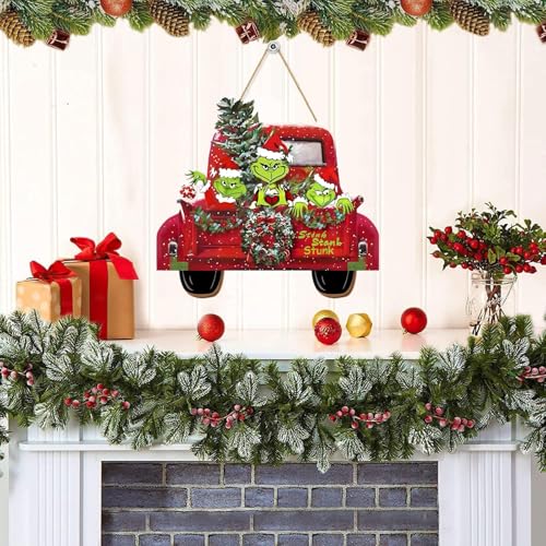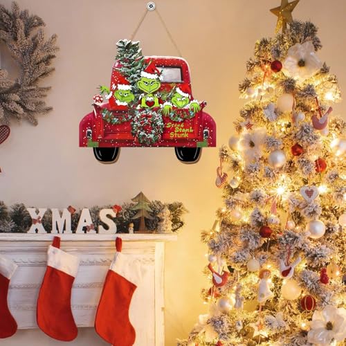Unique and Funny Design : Our Christmas red truck door sign includes a whimsical green elf and the playful phrase “stink, stank, stunk,” adorned with festive elements like snowflakes and a Christmas tree. This classic yet unique design adds a delightful touch on your holiday decor.