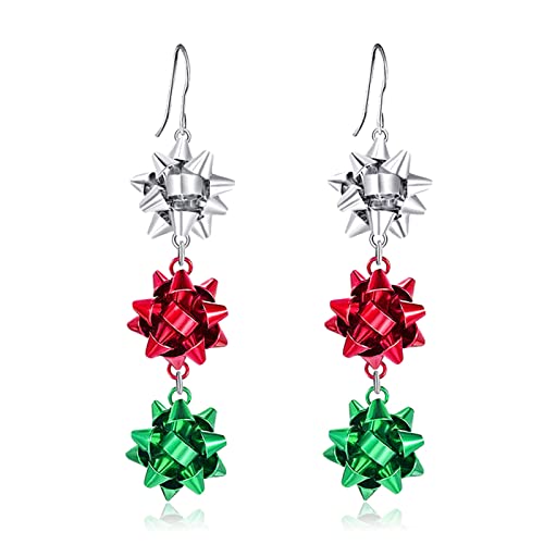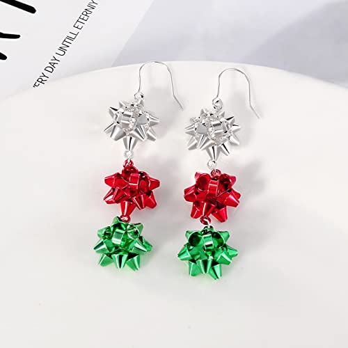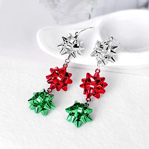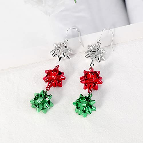 Green Christmas tree and colourful gift bow earrings are cute and lovely, pretty Christmas earrings are best, girls,girls, feminine. Nice vacation jewellery accessory.