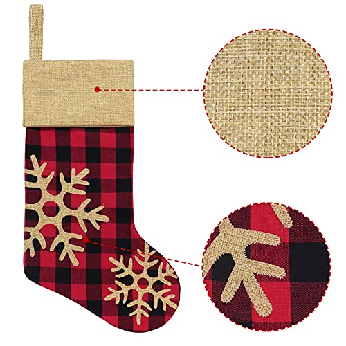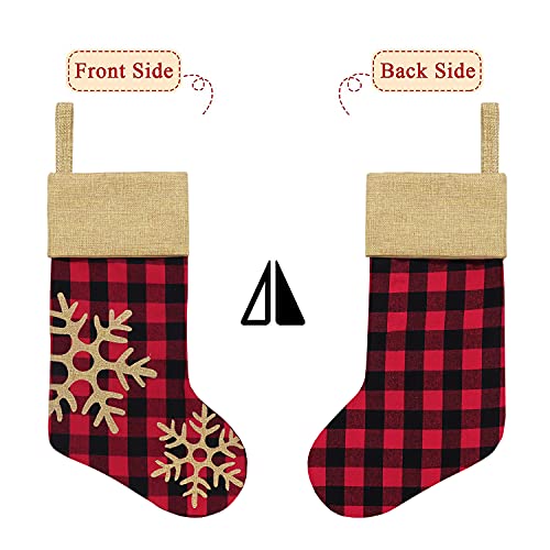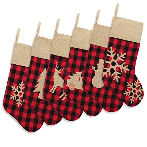 ORIGINAL DESIG: 6 pack of buffalo plaid Christmas stockings with different patterns. Classic red and black plaid Xmas stockings ornaments are full of festival atmosphere, perfect for Xmas trees, fireplaces, stairs, and as Christmas gifts for friends and family.