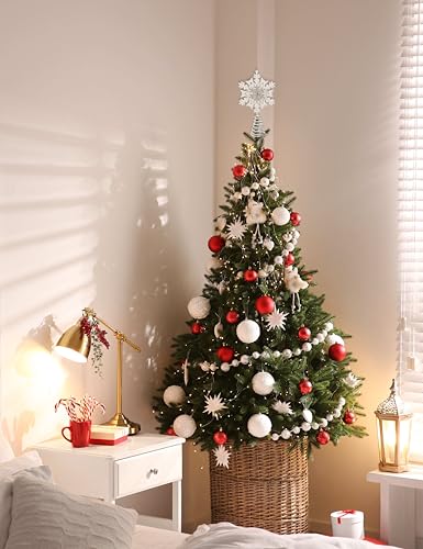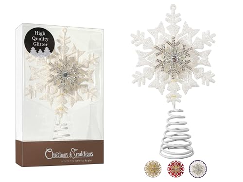 Christmas Traditions 5 inch Platinum White Glittered Diamond Center Christmas Star Snowflake Tree Topper Star for Small/Mini X’Mas Tree/Home Decor/Christmas Table/Shelf Ornaments