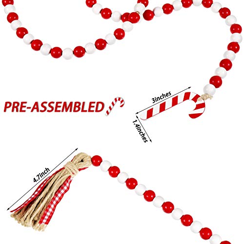 You are going to get: 1 piece of Christmas wood bead garland with candy canes style pendant, the candy canes on it’s approx. 8 x 3.5 cm/ 3 x 1.4 inch, and the total length is approx. 1 m/ 39 inch, easy for hanging and storing