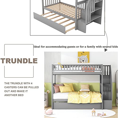 【Solid Construction Bunk Bed 】The bunk beds twin over twin size crafted of prime quality pine wood,MDF board and built-in reinforced wood slats which can provides great make stronger. this bunk bed with stairs can definitely face up to the test of time.Perfectly for kids, boys, girls bedroom, or guest room.