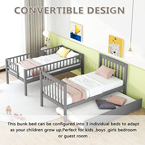 【Detachable Bunk Bed Twin 】This wooden bunk bed features one twin size upper bed ,one full size bottom bed and one twin trundle bed for accommodating your kids or any overnight sleepers. It may also be divided into 3 individual beds for even more convenience, depending on how you need to organize your space.