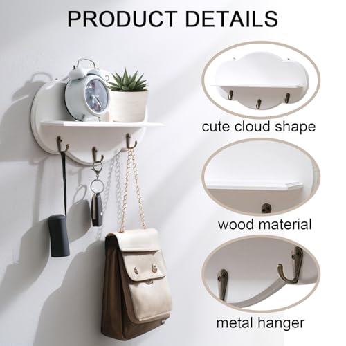 Multi-Functional Design: This set includes 2 sleek, white shelves, every featuring 3 convenient hooks. Perfect for hanging keys, small accessories, or decorative items, these shelves blend functionality with a simple yet elegant design.