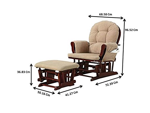 With a tasteful, traditional aesthetic, this glider blends beautifully with a classic lounge decor. Complete with an identical ottoman, it exudes understated style and finesse. Soft, sumptuous beige microfiber over thick, comfortable padding feels fabulous to touch. The chair and ottoman boast bases of striking wooden construction for an unexpected touch of glamour. Complete with a tufted button seat back for extra style, this set is just exquisite.