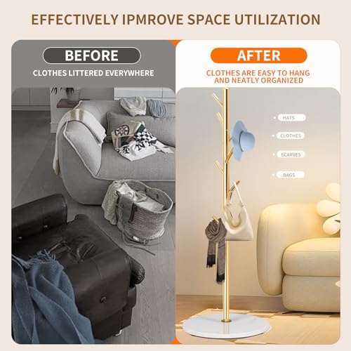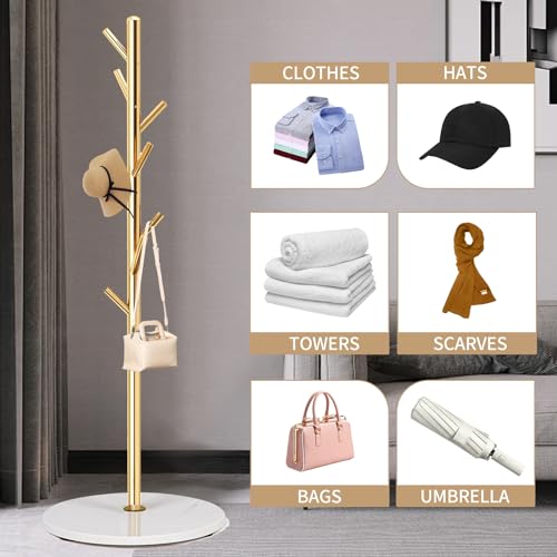 COAT RACK STAND:LOZABEE modern meatl coat rack has a unique and innovative design with a simple and stylish style. This coat racks are made of 100% natural marble. It has high stability and strong load-bearing, it can fortify multiple heavy coats and bags at the same time.8 multifunctional hooks not only meet your daily needs, but each hook has delicate stainless steel balls to care for your clothes. You’ll easily access your clothes