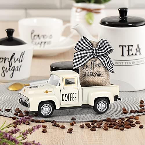 Coffee Bar Accessories: Vintage pickup truck is well made and is a classic old truck, make your own your coffee burlap bags that may be displayed all year round and are the great farmhouse decoration for your home