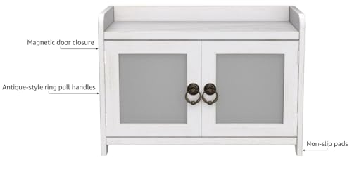 【Material】:This product is made of solid wood with glass doors. The door is closed tightly with magnets. The surface featuring a white distressed.