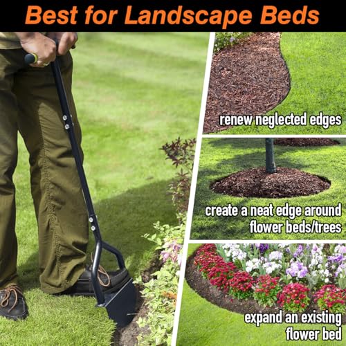 CLEAN EDGES TAKE YOUR LAWN TO THE NEXT LEVEL — this manual edger lawn tool works so great for edge-line creation and renovation of neglected edges. It creates natural edges of uniform depth where the lawn meets the landscape bed, such as creating a neat edger around your trees, expanding an existing flower bed, renewing neglected edges. Meanwhile, this half moon edger chopper lawn tool also helps deliver crisp edges along sidewalks, driveways or anywhere you want.