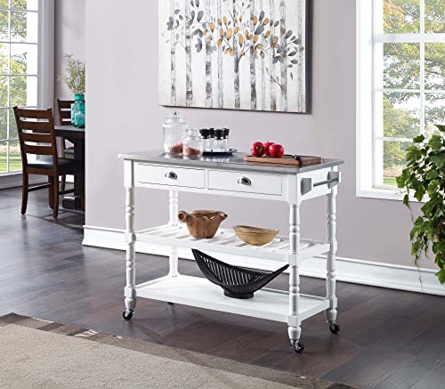 Convenience Concepts French Country 3-Tier Stainless Steel Kitchen Cart with Drawers, White