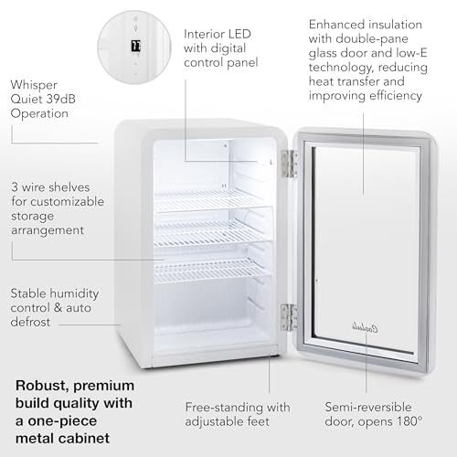 Absolute Elegance – The Cooluli Decor 2.4 glass door beverage refrigerator offers a visually stunning showcase for your beverages. Equipped with automatic defrost and interior LED lighting, this model combines clear functionality with stylish aesthetics, making every view a remark of elegance.