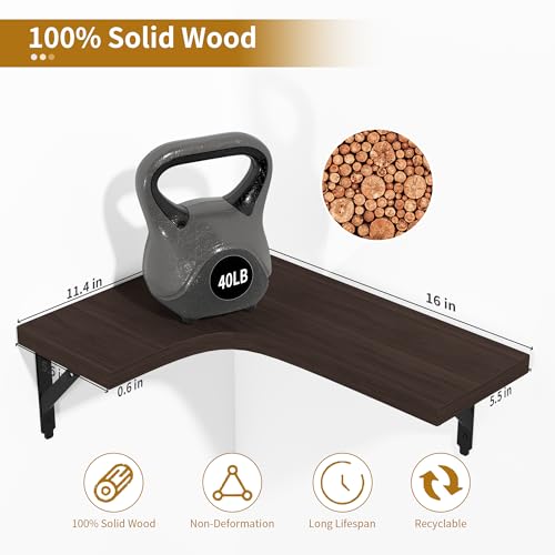 【Sturdy & Durable】Floating corner shelves are made of 100% Paulownia wood. Wooden shelves are painted with environment friendly paint for longer shelf life. Anti-damage, WaterProof. Glossy lacquer remedy for a more premium look. Each and every shelf has a maximum weight capacity of 40 lbs without damaging walls.