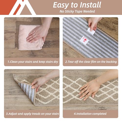HOW TO USE Stair Treads for Step: Just clean, peel, and stick! If you wish to have to reposition or take away, this stair Treads will also be easily repositioned or removed without leaving any residue, ensuring your floors stay pristine. Even when exposed to water, these treads stay securely in place without slipping