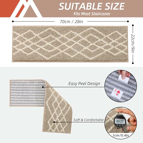 Easy Maintenance Stair Treads: COSY HOMEER carpet stair runners are designed for convenience, with a stain-resistant surface that’s easy to clean, simply vacuum or toss them in the washing machine. They are able to be repositioned or removed without leaving residue, ensuring your stairs remain undamaged and pristine