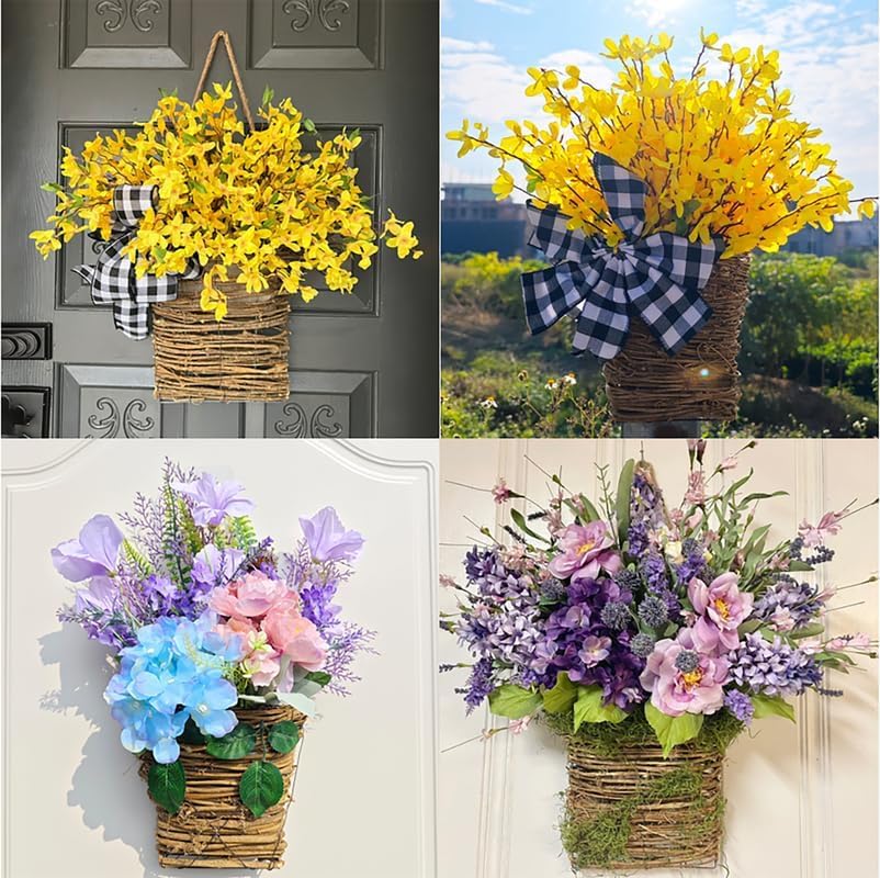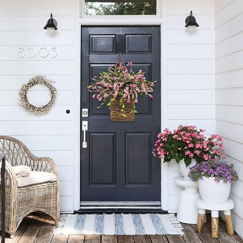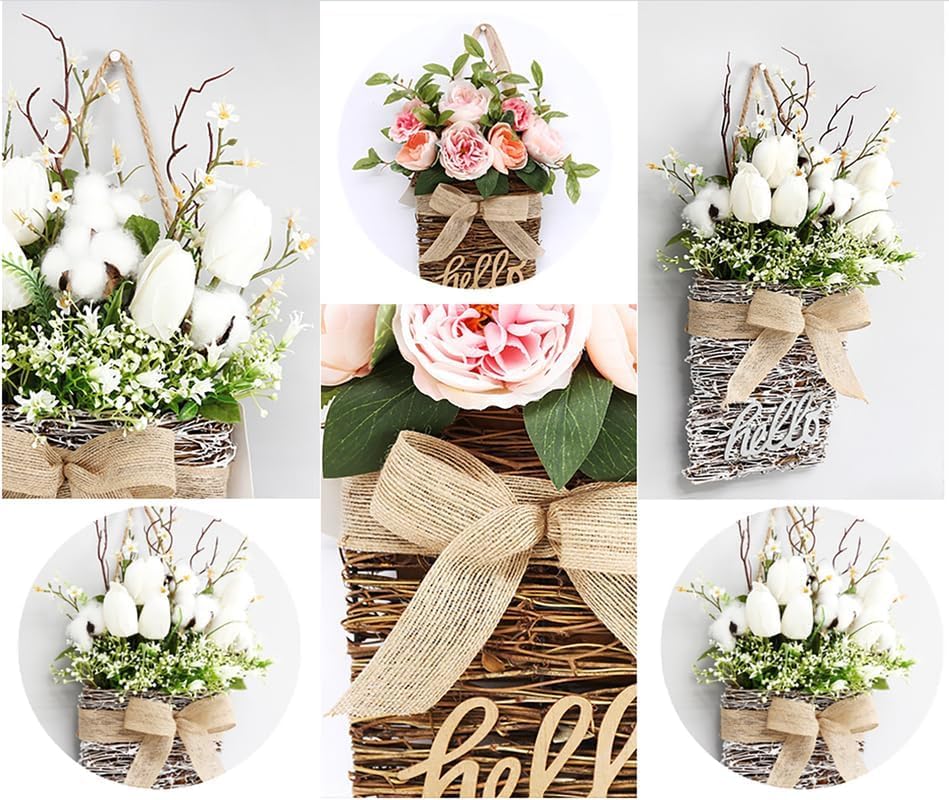 【Front Door Basket Wreath- Durable Materials】Our front door basket wreath made of silk cloth and rattan material. Rattan Hanging Basket wrapped with a beautiful burlap ribbon bow. Spring front door wreath will feel like you’ve gathered a bouquet of flowers for your guest to enjoy and you too of course.