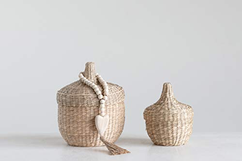 A cushy white heart dangles from the carved paulownia wooden beads that make up this ornamental accent. Hang it on a wall or wrap around a lamp. For a big ornamental book, place this piece within the center of open pages with the long fringe streaming over the brink.