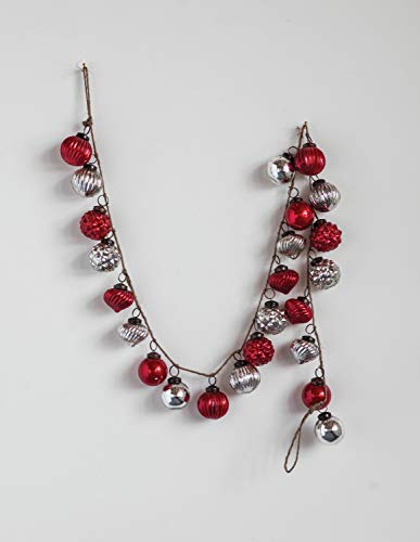 Enjoy the more than a few designs of those glass ornaments. They’re connected to a small rope with bronze toppers and create an antique garland to be envied by all. Lay it on a surface around larger pieces, add to an ornamental piece full of different pieces, hang on a hearth mantel or in front of a window.