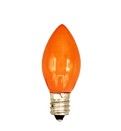 • Creative Hobbies Box of 25 Light Bulbs Ceramic Opaque Orange Steady Burning 7 Watt Incandescent C7 Candelabra Base Great for Christmas Strings and Halloween