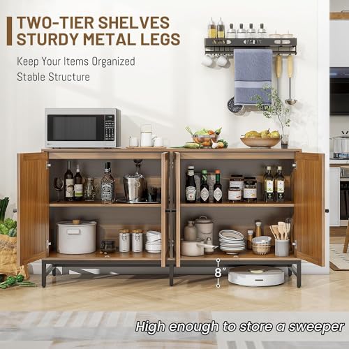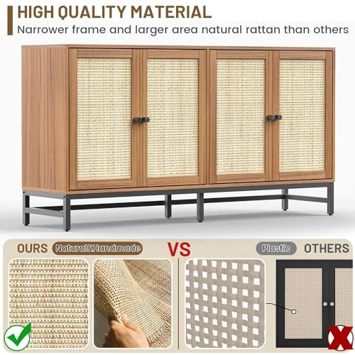 Large Storage Space: Rattan sideboard size: 59“(D)*15.7”(W)*31.5“(H). ZLWJGY rattan cabinet offers ample space to meet your storage needs. The wooden sideboard with spacious interior and large tabletop, the sideboard storage cabinet provides you ample storage space. Two shelves inside store a variety of items, such as books, blankets, toys, clothes, or kitchen appliances