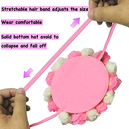 【Reasonable Size】The height is 7.5cm/ 2.95” and the diameter is 8cm/ 3.15”. The elastic cord of the puppy birthday flower hat can adjust the size to meet the head circumference of different sizes and make her comfortable on their big day. for small dogs, cats, rabbits, American doll princess and so forth.