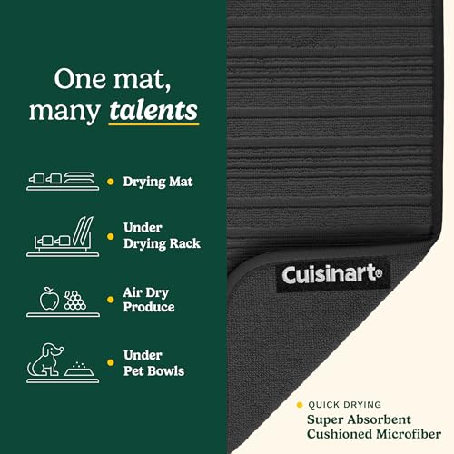 LONG-LASTING DURABILITY & EASY MAINTENANCE – Cuisinart’s microfiber drying mats retain their absorbency and structure after repeated use, even after machine washing or spot cleaning, providing reliable performance through the years, unlike other drying mats that may transform flimsy and worn out.