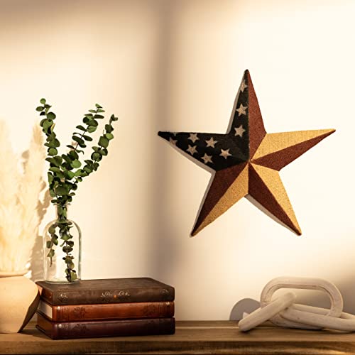 CWI Gifts Metal and Burlap Patriotic Barn Star – 18″ American Flag Hanging Star – Farmhouse Wall Decor – 1