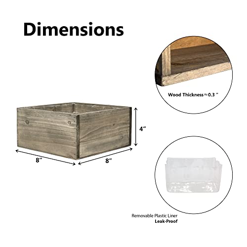 Dimensions – Height: 4″ | Opening: 8″x8″ | Interior Dimensions: L-7″ x W-7″ H-3.5″ | Wood Thickness: 0.3″ | Brown Wood Color | Pack of 1