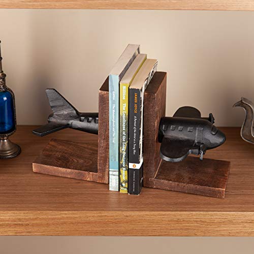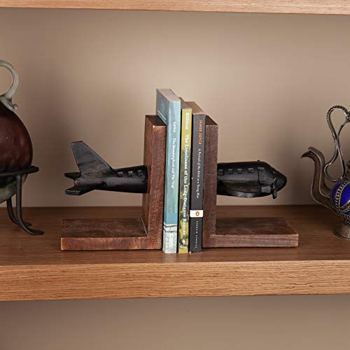 Pilots, travelers, or those with a serious case of wanderlust will adore the Airplane Bookend Set. Expertly handcrafted from aluminum in black finish, this artistic bookend set features the type of a flying plane. The black metal and dark wood combination adds will add a rustic appeal for your library or study room. This charming sculpture is a good way to organize your library or to sing their own praises your love for Go back and forth.