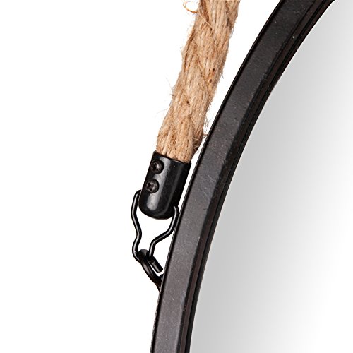 Elevate the visual interest of a drab wall space with the Danya B. Framed 20″ Decorative Round Black Metal Circle Wall Mirror with Hanging Rope. Elegantly crafted with a minimalist flair, this gorgeous hanging mirror is perfect for living rooms, bedrooms, or even on your entryway atop a console table – the possibilities are endless. The round metal frame finished in black offers a modest design commentary, whilst the elegant hanging rope adds a slight rustic appeal making it an ideal addition to industrial, cottage-style, or countryside living spaces. Improve your home décor with this stylish and versatile wall decor. Make a commentary with the minimalistic black round metal frame. The elegant hanging rope brings an enchanting rustic touch, making it the easiest addition to any up to date, industrial, or cottage-style living space. Straight away add a touch of elegance to any wall – the possibilities are endless!