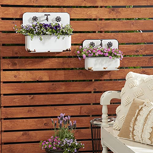 • Deco 79 Metal Indoor Outdoor Wall Planter Indoor Outdoor Sink Hanging Planter with Bronze Hardware and Distressed Accents Set of 2 Plant Hanger 17 13W White