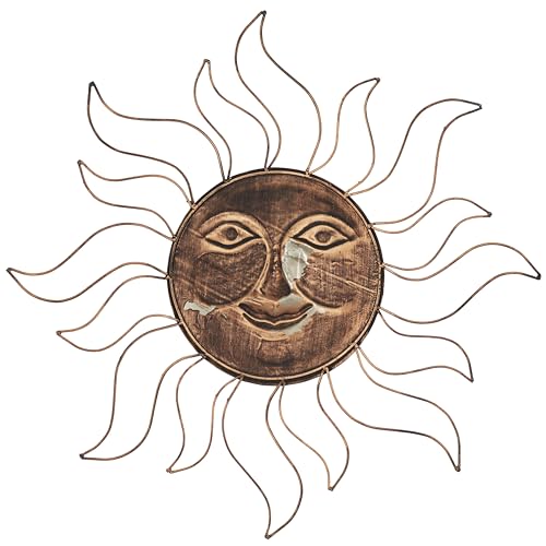 Place this on any blank wall space adding both texture and depth to your home. This sun wall sculpture can breathe life and textural dimensions into any wall space, making it an excellent addition to your living rooms and bedrooms. This item ships in 1 carton. Iron wall decor makes a superb present for any occasion. Will also be hung vertically the use of the hanging hooks; nails and screws not included. A really perfect versatile decor for indoor or outside display but aren’t rust or weather resistant. This item ships fully assembled in one piece. Made in India. This can be a single copper colored wall sculptures. Eclectic style.