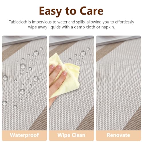 【Waterproof & Spillproof】Deep Dream upgraded table cloth has a waterproof coating at the surface, when liquid spills at the tablecloth, it forms droplets and easy cleaning, allowing you to enjoy worry-free meals and events
