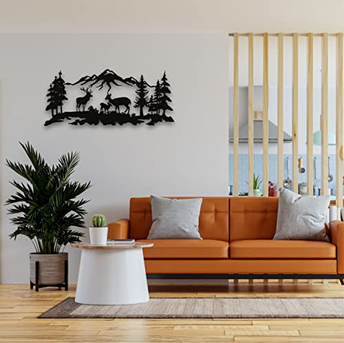 DEKADRON Metal Wall Art, Deer Family Wall Art, Metal Tree Decor, Metal Wall Decor, Interior Decoration, Wall Hangings (40″ W x 17″ H / 100×44 cm)