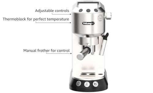 A SIP OF ITALIAN DESIGN:At only 6inch wide, the uniquely designed Dedica is our slimmest espresso machine yet, effortlessly adding a touch of minimalist chic to your kitchen with its elegant dimensions. Its sleek, compact design is complemented by an easy-to-use keep an eye on panel with illuminated buttons.