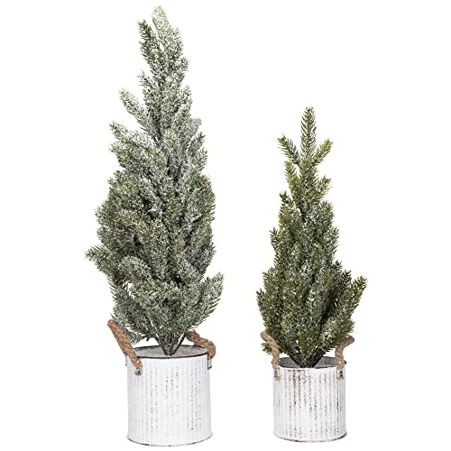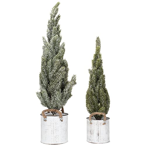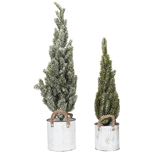 Designed bringing the wonderful thing about outdoors inside these trees feature branches which can be dusted with snow; Securely held in charming metal buckets with rope handles and a distressed classic white finish