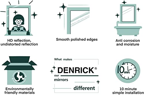 【HIGH QUALITY MATERIALS】: DENRICK Wall mirror Made of explosion-proof tempered glass surface and high hardness . The frame is made of top of the range aluminium alloy with baking paint and brushed process. Ensure the safety and durability of use even as ensuring the aesthetics. Waterproof, moisture-proof and rust-proof.”’
