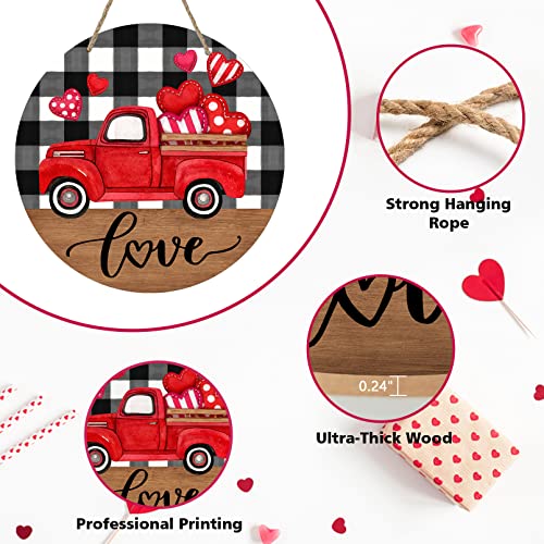 Unique Design: Our rustic door pediment design is unique and beautiful. The red truck, love heart, buffalo plaid check patterns are printed on the wooden board, which is funny and cute. This front door sign will bring more fun to your house and show the most efficient welcome to your friends in Valentine’s Day
